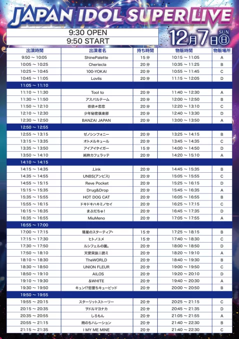 時 間:開場:10:00 開演:10:20(予定)※変更の可能性ございます