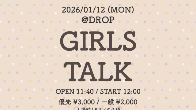 display 1/12 アメリカ村DROP 「GIRLS TALK」 会場:アメリカ村DROP 開場:11:40 開演:12:00 料金:前方3000円 / 一般2000円 (+1D) 🎤13:40-14:05/📷14:15-15:15 終演後特典会 ▫️券売スケジュール 【告知解禁... 2026年01月12日 displayライブ