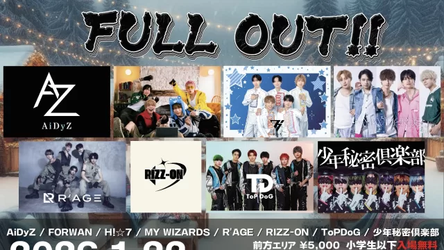 display 1/22 シアターマーキュリー新宿 『FULL OUT!!』 📍シアターマーキュリー新宿 🗓️1/22(木) 🕰️OPEN 17:20 / START 17:35 🎫前方 5,000円/ 後方 2,000円(各D別) ✍️前方抽選チケット:1月7日(水)22:00~1月9日(... 2026年01月22日 displayライブ