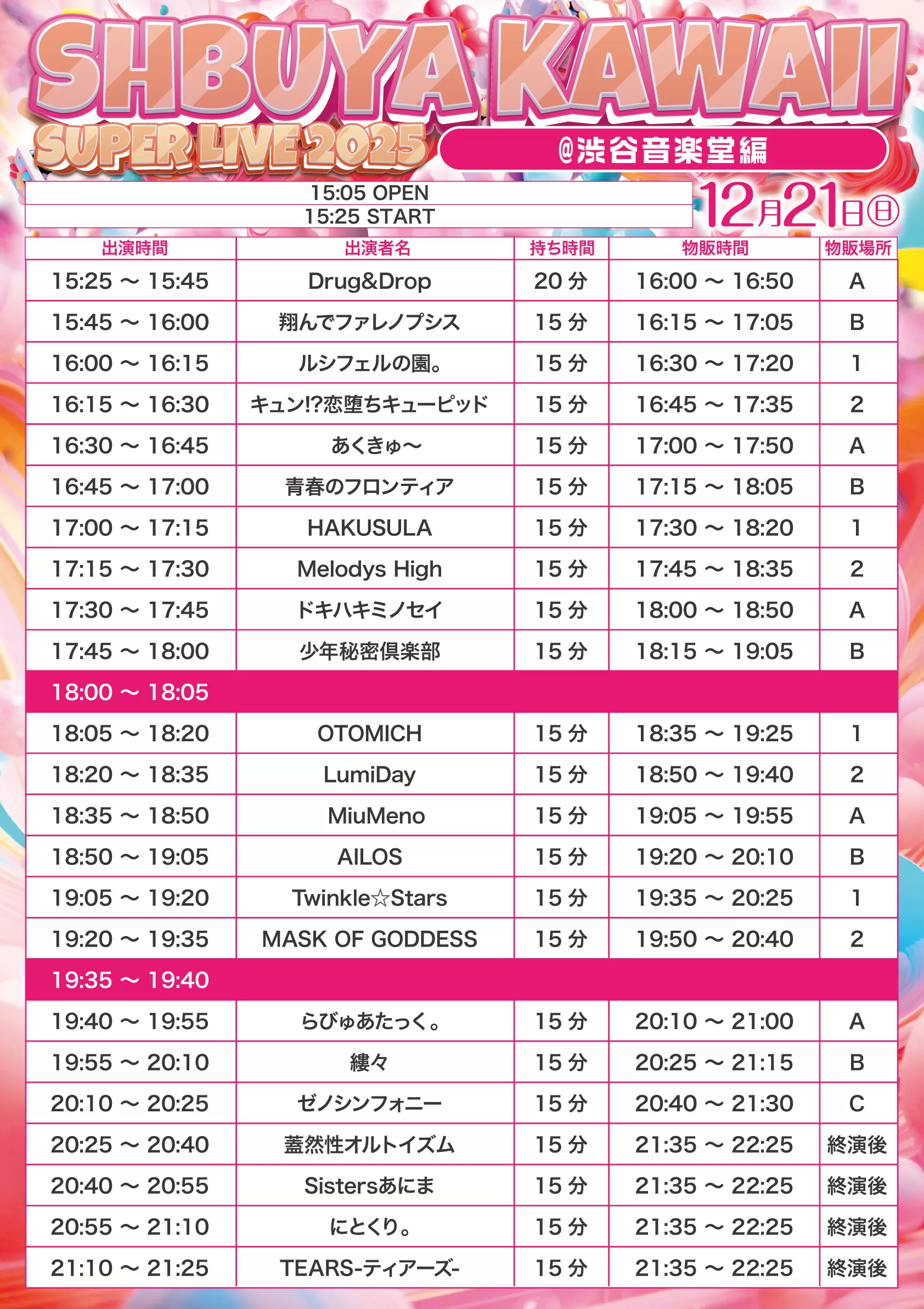 ⏰1部 OPEN 12:00 / START 12:20